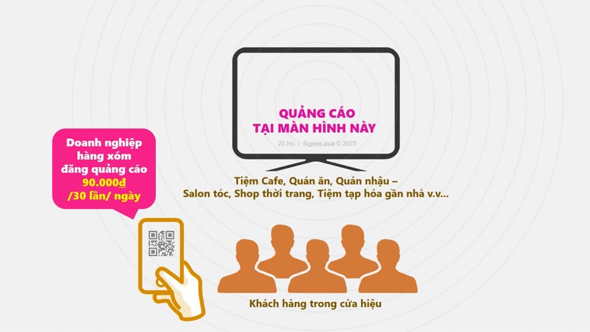 Mô hình ‘Quảngcáo.gầnnhà” sẽ chia sẻ 15% trên mỗi đồng doanh thu quảng cáo mang lại, ngay trên màn hình LED/TV trong cửa hiệu của bạn.